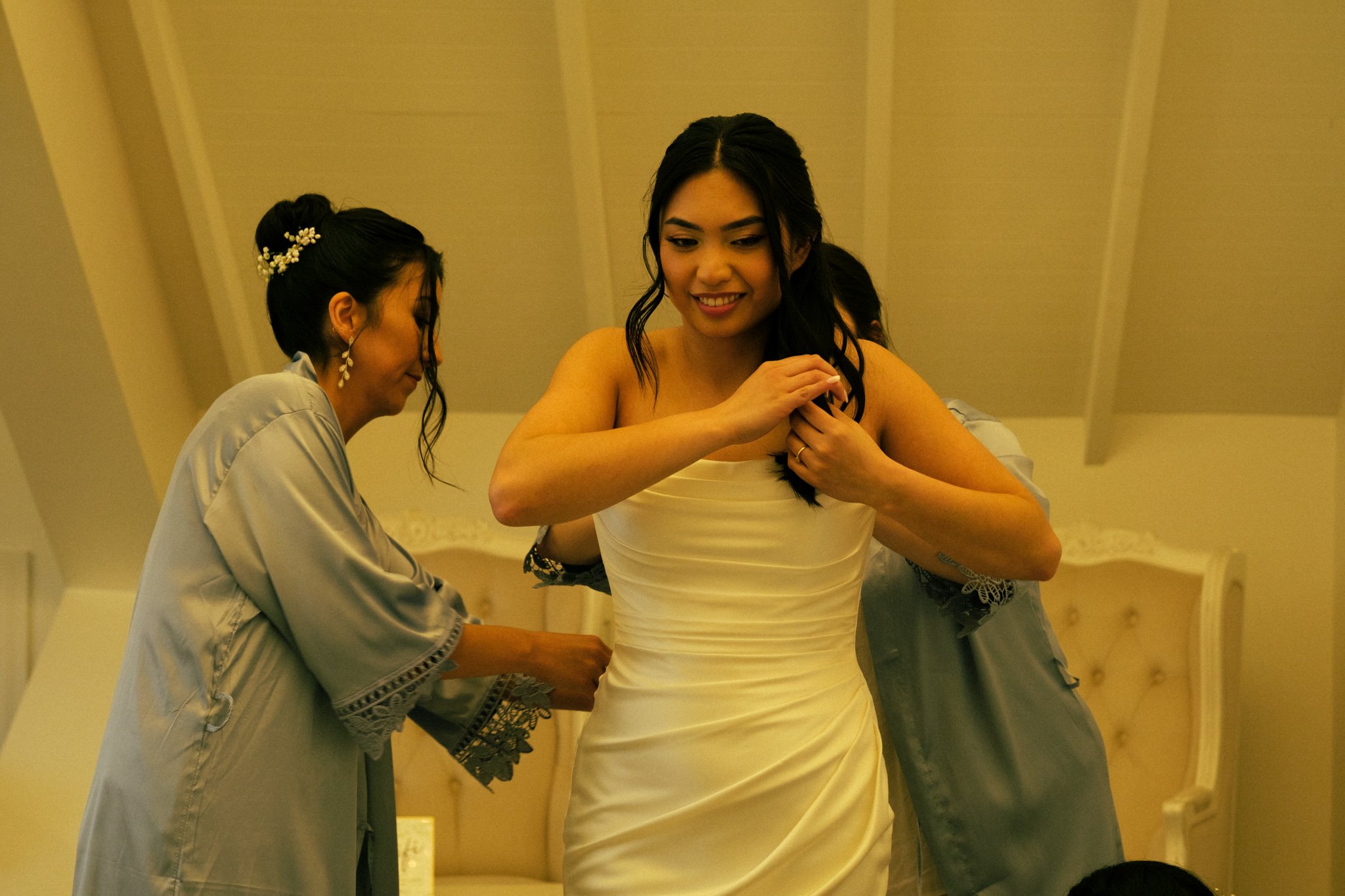 There is nothing quite like a bride getting ready for her wedding. Her entire vision comes to life — the dress, the makeup, the hair, the jewellery, the shoes. All these decisions are made separately beforehand, but they only come together on the day. Paired with the anticipation of getting married to the love of your life, it’s no wonder this time of day can get very emotional. So it’s great to have your best girls by your side in these final moments before the wedding.