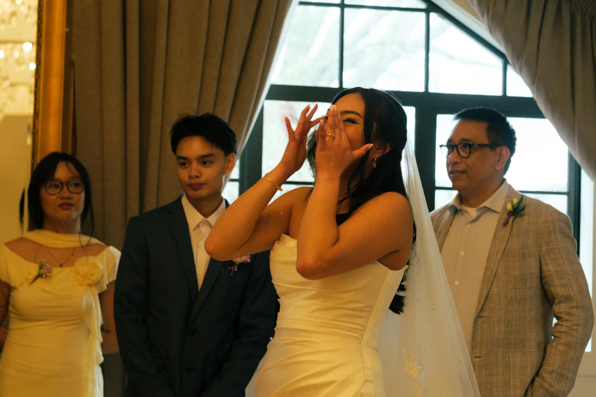 Instead of doing the “traditional” first look with her husband-to-be, Charisse opted to share this moment with her family — and leave the mystery for Chris until the aisle. It was a beautiful, emotionally-charged moment, and I could really feel how close-knit they are watching from the sidelines.